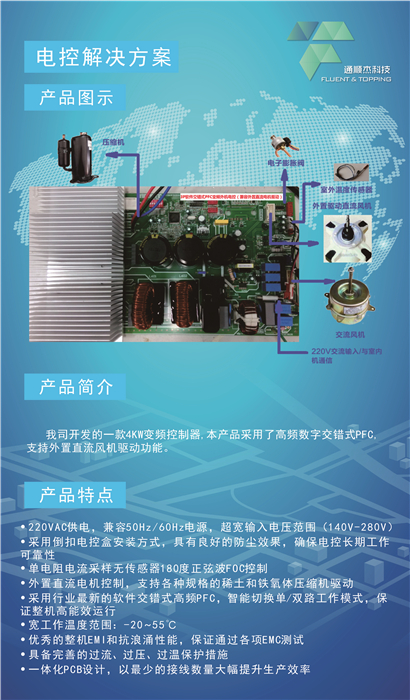 A 4kw inverter controller developed by our company, this product adopts high-frequency digital interleaved PFC and supports external DC fan drive function.