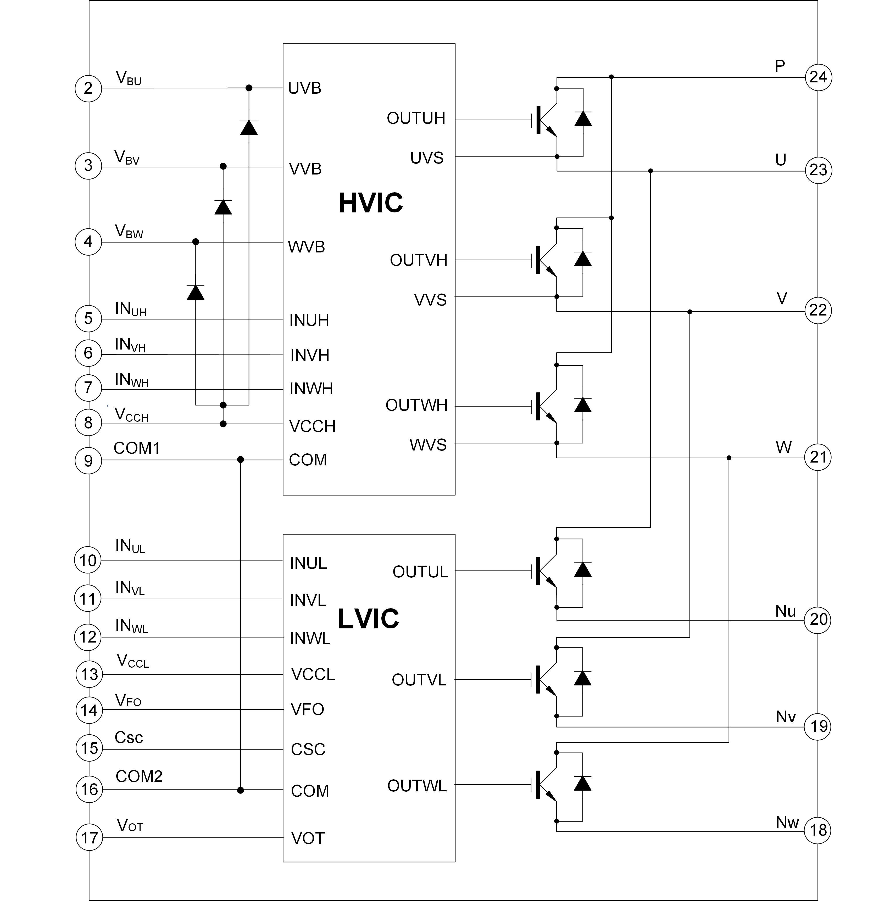 SDM15G60FBTA是高度集成、高可靠性的三相无刷直流电机驱动电路,主要应用于较低功率的变频驱动,如空调、变频器、洗衣机等。其内置了3相全桥高压栅极驱动电路和6个低损耗IGBT管。